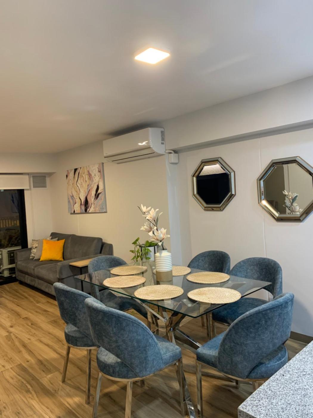 The spacious apartment is fitted with 2 bedrooms, 2 bathrooms, bed linen, towels, a flat-screen TV with streaming services, a dining area, a fully equipped kitchen, and a terrace with quiet street views. For added privacy, the accommodation has a private entrance and is protected by full-day security.