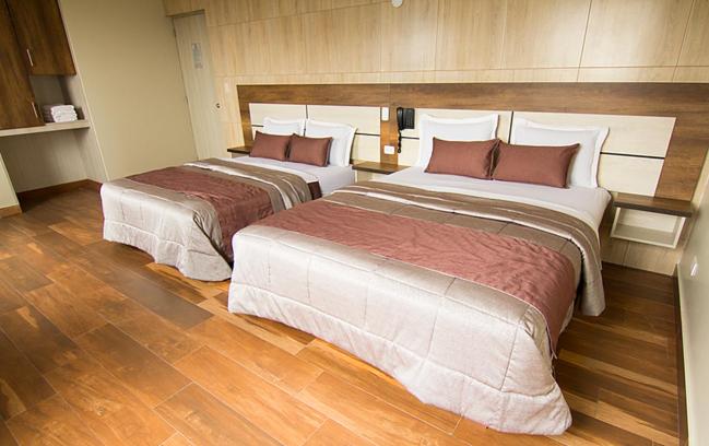 Standard Double Room with Two Double Beds. This air-conditioned twin room is comprised of a flat-screen TV with cable channels, a private bathroom as well as a balcony with garden views. The unit has 2 beds.
